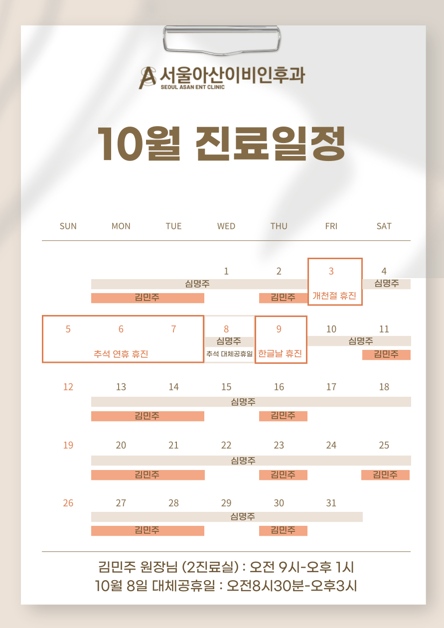 연휴기간 중 10월 4일 (토)은 정상진료로